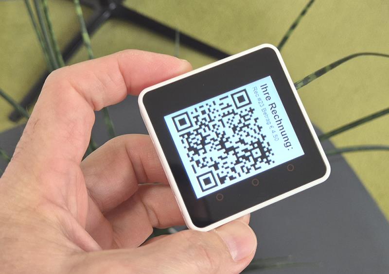 Dieses kleine Display kann überall auf dem POS positioniert werden und zeigt den QR-Code für die Papierlose Rechnung an.