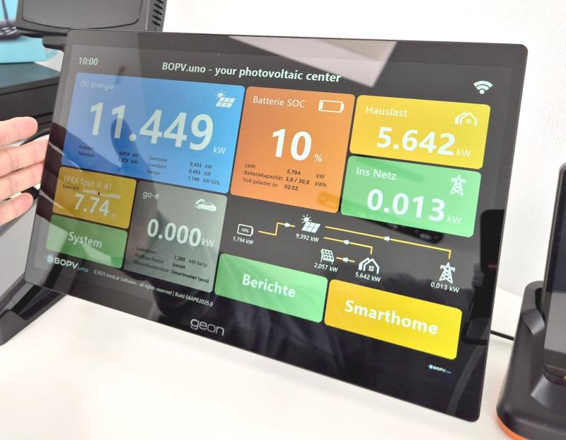 BOPV.uno Komplettset zur Anzeige und zum Loggen von bis zu 3 Fronius Wechselrichter, bis zu 3 Huawei Wechselricher, 3 SMA Wechselrichtern und bis zu 3 Balkonkraftwerke, Wasserkraftwerke oder Windkraftwerke. Mit Smarthome-Funktionen und Strompreisabhängigem Laden (nur Huawei).